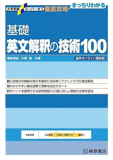 「MARCH・関関同立レベル」の英文解釈の壁に挑む際、その橋渡しとして最適なのが『大学受験スーパーゼミ 徹底攻略 基礎英文解釈の技術 100』です。