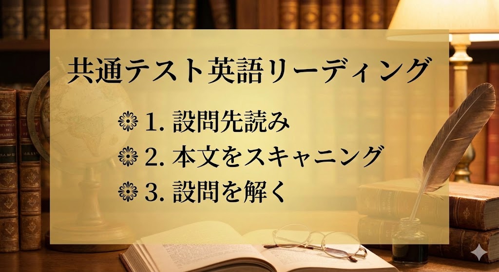 共通テスト英語リーディングは、単に英語力だけでなく、「情報処理能力」が問われる試験です。