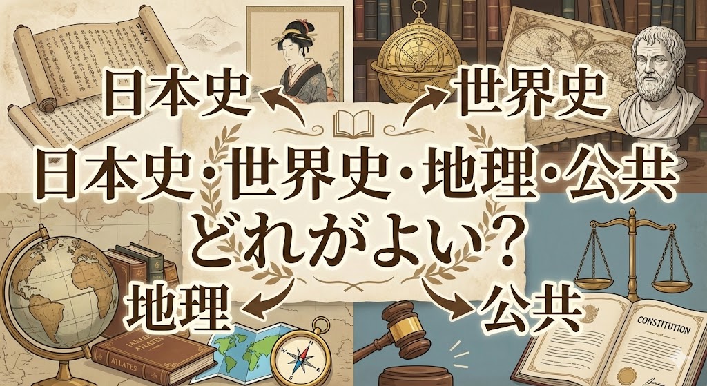 文系の大学受験において、社会科目の選択は合否を左右する重要なポイントです。多くの大学で2科目が課されますが、「日本史」「世界史」「地理」「公共(倫理・政治経済)」の中からどれを選べばいいか悩んでいる受験生も多いでしょう。