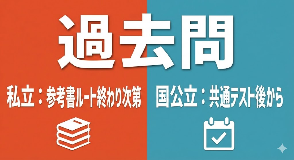 この質問に対する回答は、あなたの志望校が「国公立」か「私立」か、そして現在の「進捗状況」によって劇的に変わります。一律の「正解」を求める思考停止はやめましょう。過去問は単なる「力試し」ではなく、敵の攻撃パターンを知るためのものです。