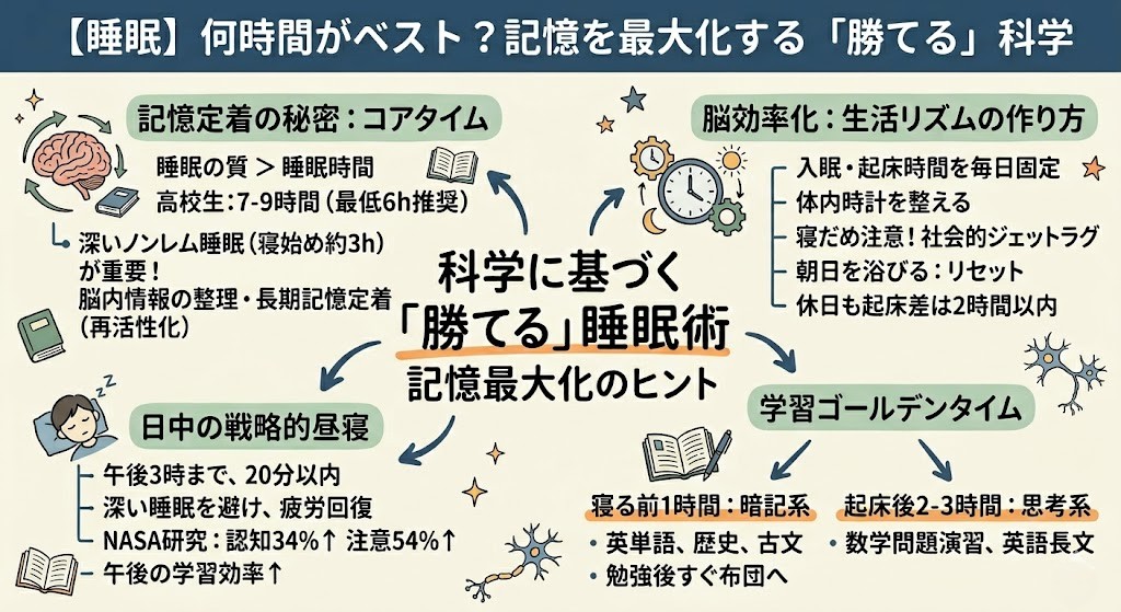 受験という長期戦を乗り切るための最強の武器は質の高い睡眠です。今回は、科学的根拠に基づいた「勝てる睡眠術」をご紹介します。睡眠をコントロールし、ライバルに差をつけましょう。
