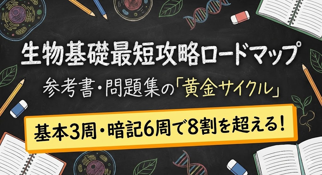 しかし、単に用語を眺めるだけでは得点には結びつきません。「用語を知っている」状態から「用語を使って問題が解ける」状態へ移行するには、明確な回数設定と正しい負荷のかけ方が必要です。今回は、参考書と問題集を往復するサイクルを軸にした、生物基礎の「完全習得ロードマップ」を解説します。