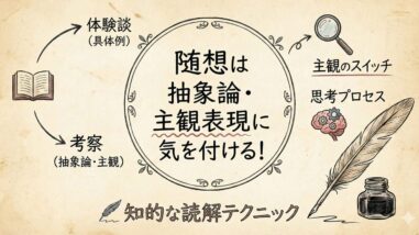 現代文の選択肢でいつも間違った方を選んでしまう人必見。本文の言葉に惑わされる「消去法の罠」から抜け出し、解答根拠を自ら導き出す「積極法」の運用テクニックを詳しく解説。誤文選択の特殊な解法や、迷いを断ち切る思考法を伝授します。