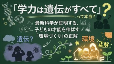 保護者の方向け 【受験生の保護者】学力は遺伝で決まる?一喜一憂する前に知ってほしい「受験の科学」 大学受験生の学力は遺伝で決まる?実は遺伝の影響は約半分。この記事では、遺伝に一喜一憂せず、お子さんがストレスなく学習に集中できる家庭環境の作り方や、親の最適なサポート方法を具体的に解説します。 2025.10.09 保護者の方向け