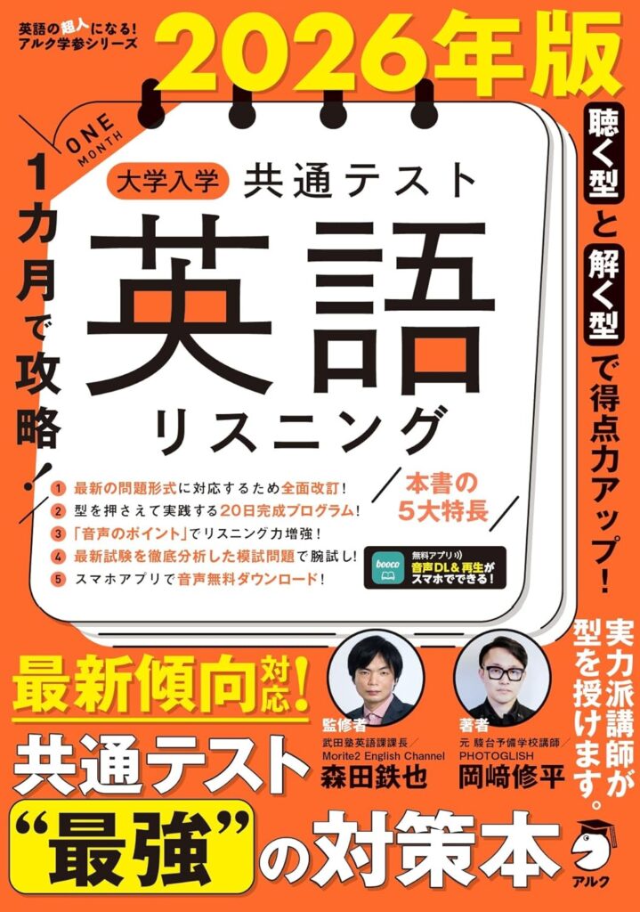 共通テストのリスニングは、純粋な聴解力以上に「情報処理能力」が問われる特殊な試験です。今回は、そんな癖のある共通テストを、最短ルートで攻略するための『2026年版 1カ月で攻略! 大学入学共通テスト英語リスニング』を紹介します。 タイトルの「1カ月」をさらに短縮し、わずか10日+αで仕上げる「超・短期集中プラン」もあわせて公開します。