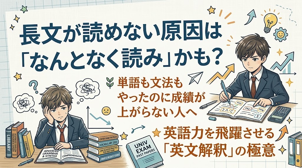 「単語も覚えた。文法も一通りやった。でも、なぜか長文が読めないし模試の成績も上がらない…」そんな悩みを抱えていませんか?