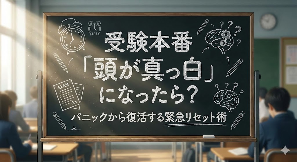 今回は、もし試験本番で頭が真っ白になってしまった時の「緊急リセット術」と、そうならないための「事前の心構え・準備」について解説します。直前期の受験生は必読です。