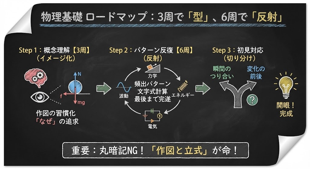 今回は、公式暗記に頼らず、現象の本質を掴んで得点源にするための「物理基礎・完全習得ロードマップ」を解説します。
